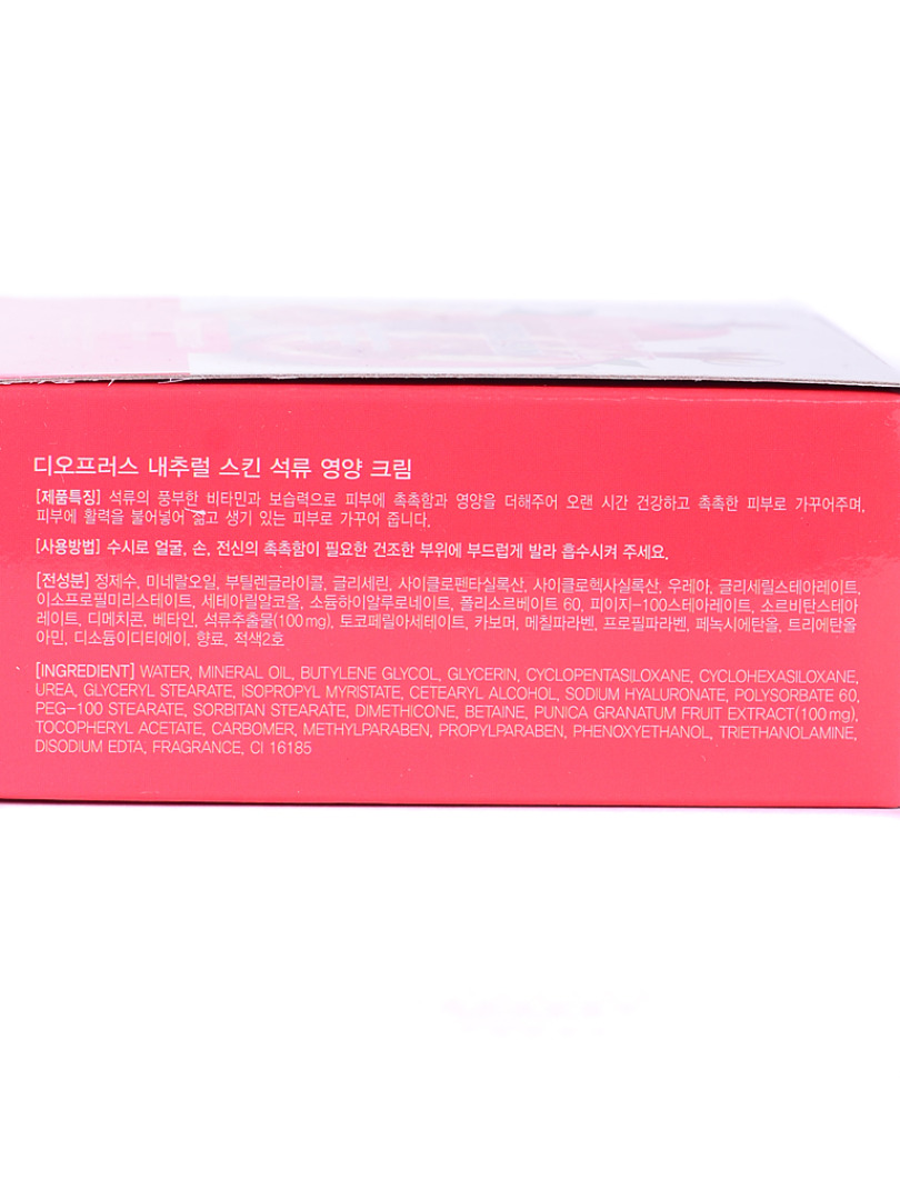 Изг-ль: GREENCOS Co.Ltd., Республика Корея, 64-30, Hagunsandan 1-ro, Yangchon-eup, Gimpo-si, Gyeonggi-do. Питательный крем для лица и тела с экстрактом граната. Нежная бархатистая текстура крема увлажняет и питает кожу, оставляя приятный аромат сочного граната. Экстракт граната, обладает способностью восстанавливать липидный барьер, увлажнять, смягчать и успокаивать воспаленную кожу. Имеет легкий осветляющий и отшелушивающий эффект, придавая коже здоровый вид. Применение: нанести крем на тонизированную кожу, легкими массирующими движениями.