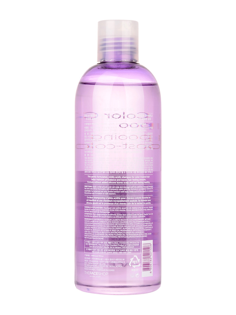 Изготовитель: «THE FACE SHOP CO. LTD. », Южная Корея, 58, Saemunan-ro, Jongno-gu, Seoul. Шампунь обладает слабокислотной формулой pH 5.0~5.5. Благодаря чему не разрушает пигмент краски. Масло подсолнуха и комплекс растительных экстрактов ухаживают за волосами, придают им здоровый блеск, способствуют гладкости кутикулы. Имеет слобокислотную формулу, не нарушает баланс кожи PH6.5, контролирует баланс влаги для кожи головы и волос, сохраняет здоровье волос, придает им сияние и блеск. Не содержит сульфатов, парабенов, силикона, минерального масла, триэтаноламина, искусственных ароматизаторов.