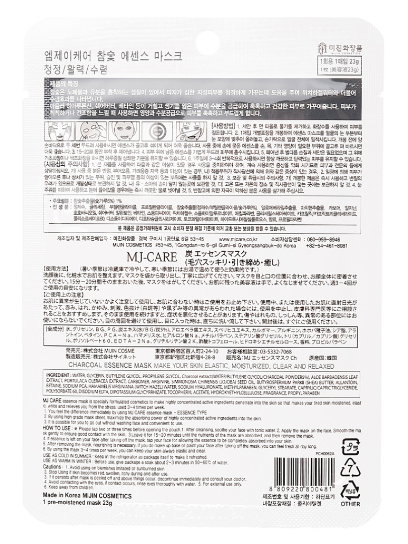 Изготовитель: MIJIN COSMETICS, Республика Корея, 53-45, 1 Gongdan-ro 6-gil, Gumi-si Gyeongsangbuk-do. Маска с древесным углём, который является превосходным абсорбентом, спосособствует глубокому очищению пор, выводит токсины и стимулирует клеточное дыхание. Активные вещества маски проникают в глубинные слои эпидермиса и обеспечивают интенсивное питание кожи, помогают снять усталость и повысить жизненный тонус, делая кожу упругой и эластичной.Способ применения:Поместите маску на очищеное лицо обеспечив хороший контакт с кожей лица по всей площади нанесения.Снимите через 20 минут. Оставшуюся на лице эссенцию аккуратно разгладьте пальцами по косметическим линиям для лучшего впитывания в кожу. Объем:23гр