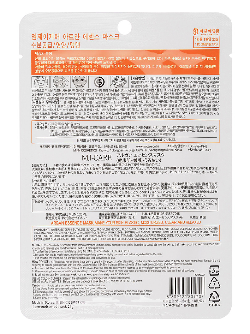 Изготовитель: MIJIN COSMETICS, Республика Корея, 53-45, 1 Gongdan-ro 6-gil, Gumi-si Gyeongsangbuk-do. Маска активно питает и увлажняет кожу. Подойдет в качестве средства от морщин, для укрепления кожи и от пигментных пятен. Масло арганы оказывает смягчающее и питательное действие, стимулирует активность клеток, нейтрализует свободные радикалы, препядствуя тем самым преждевременному старению кожи. Способ применения:Поместите маску на очищеное лицо обеспечив хороший контакт с кожей лица по всей площади нанесения.Снимите через 20 минут. Оставшуюся на лице эссенцию аккуратно разгладьте пальцами по косметическим линиям для лучшего впитывания в кожу. Объем:23гр