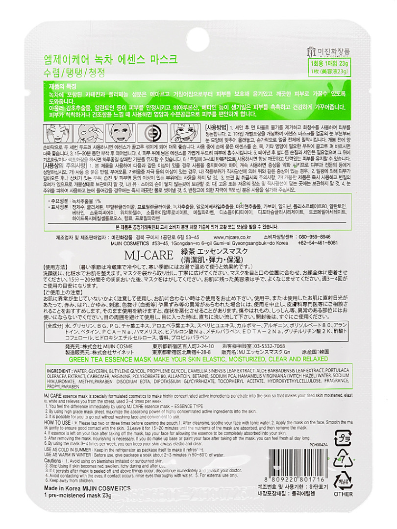 Изготовитель: MIJIN COSMETICS, Республика Корея, 53-45, 1 Gongdan-ro 6-gil, Gumi-si Gyeongsangbuk-do. Содержанит полифенолы, активность которых в несколько раз превышает активность витамина Е. Оказывает противовоспалительное и антибактериальное действие. Кофеин улучшает микроциркуляцию крови и питание кожи, уменьшает отечность; танины придают коже упругость. Активизирует кровообращение, снабжает клетки кислородом, усиливает защитные свойства кожи.Способ применения:Поместите маску на очищеное лицо обеспечив хороший контакт с кожей .Снимите через 20 минут. Оставшуюся на лице эссенцию аккуратно разгладьте пальцами до полного впитывания.Объем:23гр