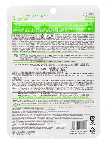 МЖ Essence Маска тканевая для лица Зеленый чай Green Tea Essence Mask 23гр