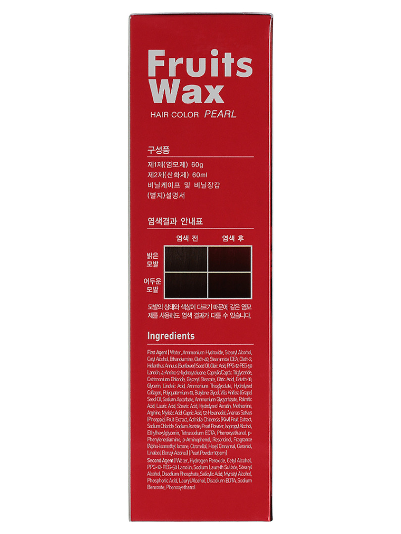 Water, Ammonium Hydroxide, Stearyl Alcohol, Cetyl Alcohol, Ethanolamine, Oleth-40, Stearamide DEA, Oleth-2, Helianthus Annuus (Sunflower) Seed Oil, Oleic Acid, PPG-12-PEG-50 Lanolin, 4-Amino-2-hydroxytoluene, Caprylic/Capric Triglyceride, Cetrimonium Chloride, Glyceryl Stearate, Citric Acid, Fragrance, p-Phenylenediamine, Ceteth-10, p-Aminophenol, Glycerin, Linoleic Acid, Ammonium Thioglycolate, Hydrolyzed Collagen, Polyquaternium-10, Resorcinol, Butylene Glycol, Vitis Vinifera (Grape) Seed Oil, Sodium Ascorbate, Ammonium Glycyrrhizate, Tetrasodium EDTA, Palmitic Acid, Lauric Acid, Stearic Acid, Hydrolyzed Keratin, Methionine, Arginine, Phenoxyethanol, Myristic Acid, Capric Acid,1,2-Hexanediol, Ananas Sativus (Pineapple) Fruit Extract, Actinidia Chinensis (Kiwi) Fruit Extract, Sodium Chloride, Sodium Acetate, Pearl Powder, Isopropyl Alcohol, Ethylhexylglycerin, Water, Hydrogen Peroxide, Cetyl Alcohol, PPG-12-PEG-50 Lanolin, Sodium Laureth Sulfate, Stearyl Alcohol, Disodium Phosphate, Salicylic Acid, Myristyl Alcohol, Phosphoric Acid, Lauryl Alcohol, Sodium Benzoate, Phenoxyethanol, Disodium EDTA
