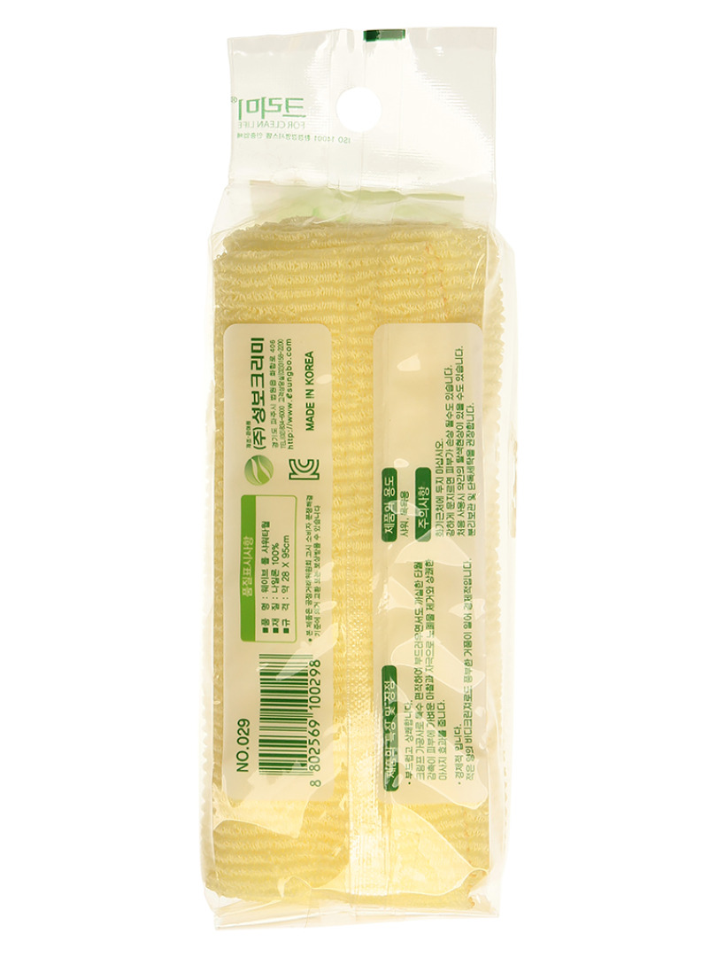 Изготовитель: SUNGBO CLEAMY CO., LTD., Корея, Республика, 406, Hwahap-ro, Beobwon-eup, Paju-si, Gyeonggi-do. Благодаря оригинальной вязке из гофрированного волокна мочалка создает одновременно ощущение мягкости, нежно отшелушивая огрубевшую кожу. Шероховатая текстура стимулирует циркуляцию крови по всему телу и помогает сохранить здоровье и упругость кожи. Мочалка позволяет получать обильную пену, используя небольшое количество геля для душа. Ее легко мыть, и она быстро сохнет. Высококачественное волокно обеспечивает долговечность мочалки. Материал: нейлон
