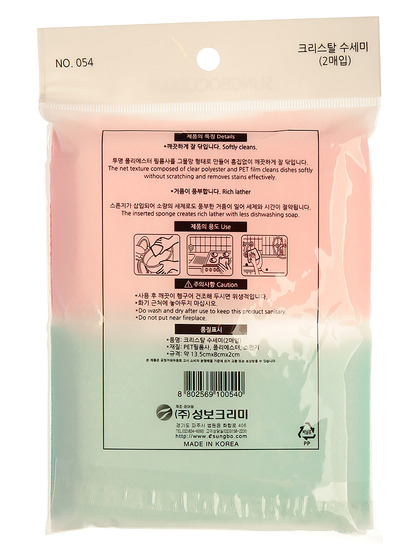 Изготовитель: SUNGBO CLEAMY CO., LTD., Корея, Республика, 406, Hwahap-ro, Beobwon-eup, Paju-si, Gyeonggi-do. Губка-скраббер для мытья посуды. Наличие губки улучшает пенообразование, помогая снизить расход средств для мытья посуды.