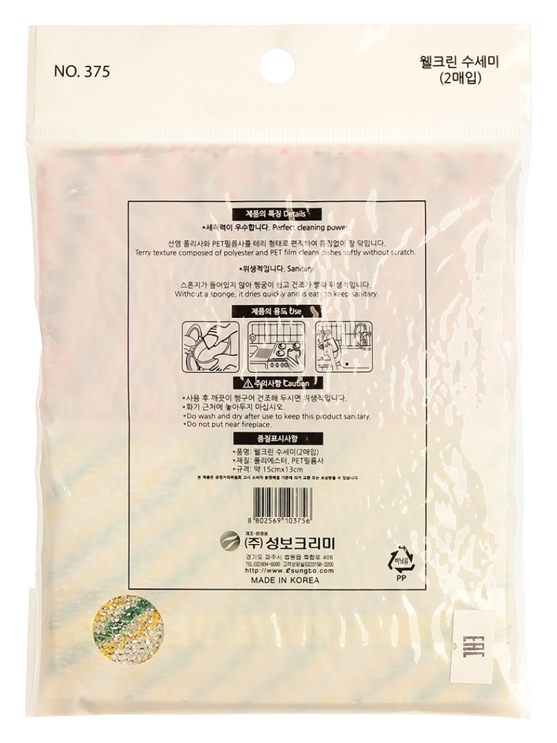 Изготовитель: «Sung Bo Cleamy Co., Ltd. », Южная Корея, 225, Galgogri, Bobwonub, Paju, Geonggi Do. Губка-скраббер для мытья посуды. Наличие губки улучшает пенообразование, помогая снизить расход средств для мытья посуды.