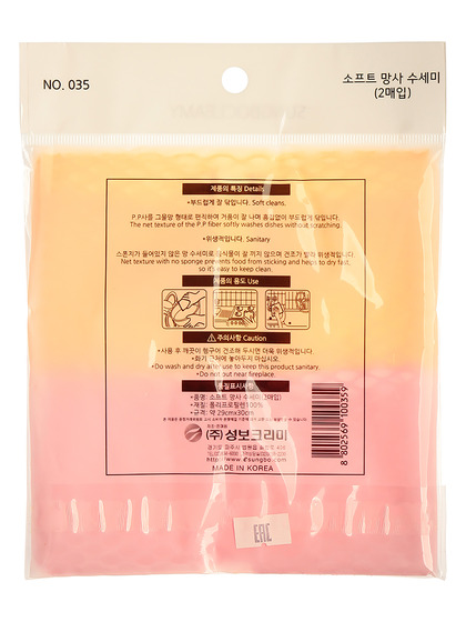Изготовитель: «Sung Bo Cleamy Co., Ltd. », Южная Корея, 225, Galgogri, Bobwonub, Paju, Geonggi Do. Губка-скраббер для мытья посуды. Наличие губки улучшает пенообразование, помогая снизить расход средств для мытья посуды.