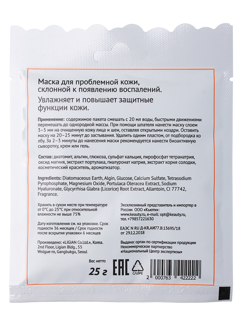 АН Original Маска для лица альгинатная с пробиотиками Probiotics Modeling Mask / Refill 25гр