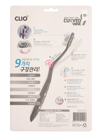 Изготовитель: «CLIO Co.,Ltd », Южная Корея, 52-43, Geumgok-ro, Jiksan-eup,Seobuk-gu, Cheonan-si, Chungcheongnam-do, РЕСП. КОРЕЯ. Зубная щетка с отбеливающим эффектом имеет коническую спиральную щетину. Мягкая зубчатая зубная щетка с нитевидным наконечником идеально подходит для чистки языка. Антибактериальная резиновая головка борется против зубного налета. Эта зубная щетка помогает устранить проблемы с деснами. Микрощетинки аккуратно очищают и массируют десны.