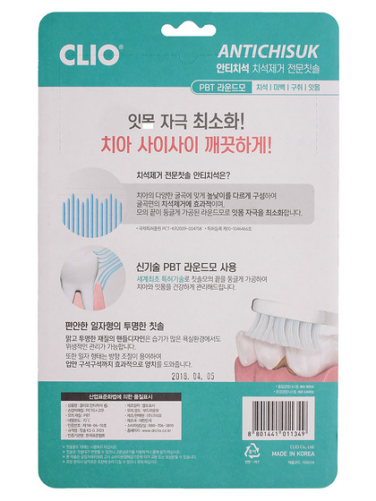 Изготовитель: CLIO Co., Ltd., КОРЕЯ, РЕСПУБЛИКА, 52-43, Geumgok-ro, Jiksan-eup, Seobuk-gu, Cheonan-si, Chungcheongnam-do. Зубная щетка оснащена специальной, в меру жесткой двухуровневой щетиной, которая легко устраняет остатки пищи, удаляет налет любой сложности, эффективно борется с зубным камнем и препятствует образованию кариеса. Она деликатно относится с хрупкой зубной эмали и ранимым деснам, обеспечивает эффективную бережную чистку зубов.