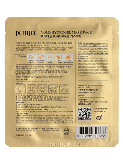 Изготовитель: NS RETAL CO., LTD., Корея, Республика, 2F, Lucky Building, 12, Tojeong-ro, Mapo-gu, Seoul. В составе маски мощный омолаживающий компонент – 24K золото. Золото усиливает микроциркуляцию крови, стимулирует ее приток к клеткам кожи, активирует выработку собственного коллагена и эластина, способствует накоплению гиалуроновой кислоты, повышает активность фибробластов, что усиливает регенерационные свойства кожи. Золото помогает поддерживать оптимальный гидро-баланс кожи в течение длительного времени. Всё это приводит к обновлению и омоложению кожи: она становится упругой и эластичной, укрепляется и подтягивается, овал лица становится более четким. Способ применения: На очищенную и тонизированную кожу лица приложить маску и аккуратными похлопывающими движениями добиться ее плотного прилегания. Через 15-20 минут маску снять и оставить остатки эссенции на коже до полного впитывания.