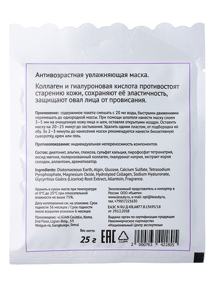- Тип: Альгинатная маска