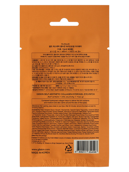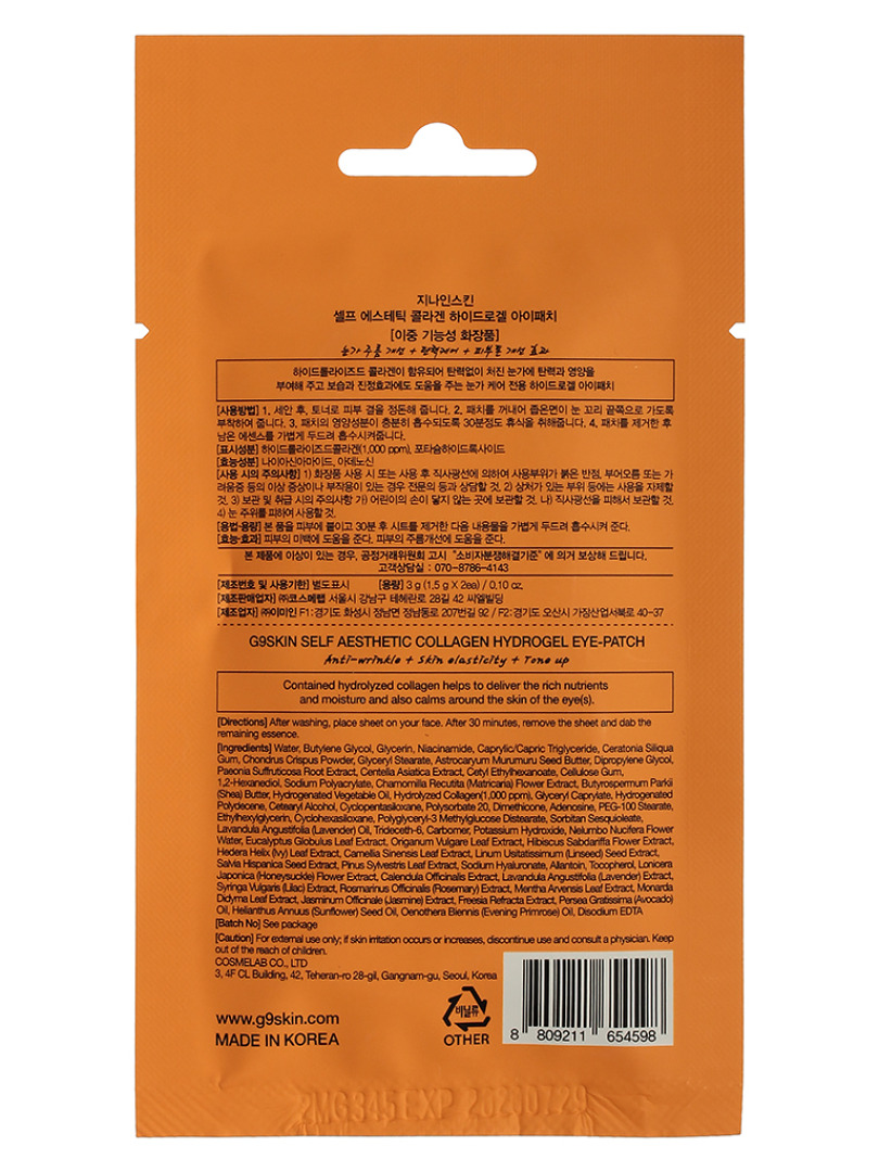 G9 Self Aesthetic Патчи для глаз гидрогелевые с коллагеном G9 Self Aesthetic Collagen Hydrogel eye patch 3гр