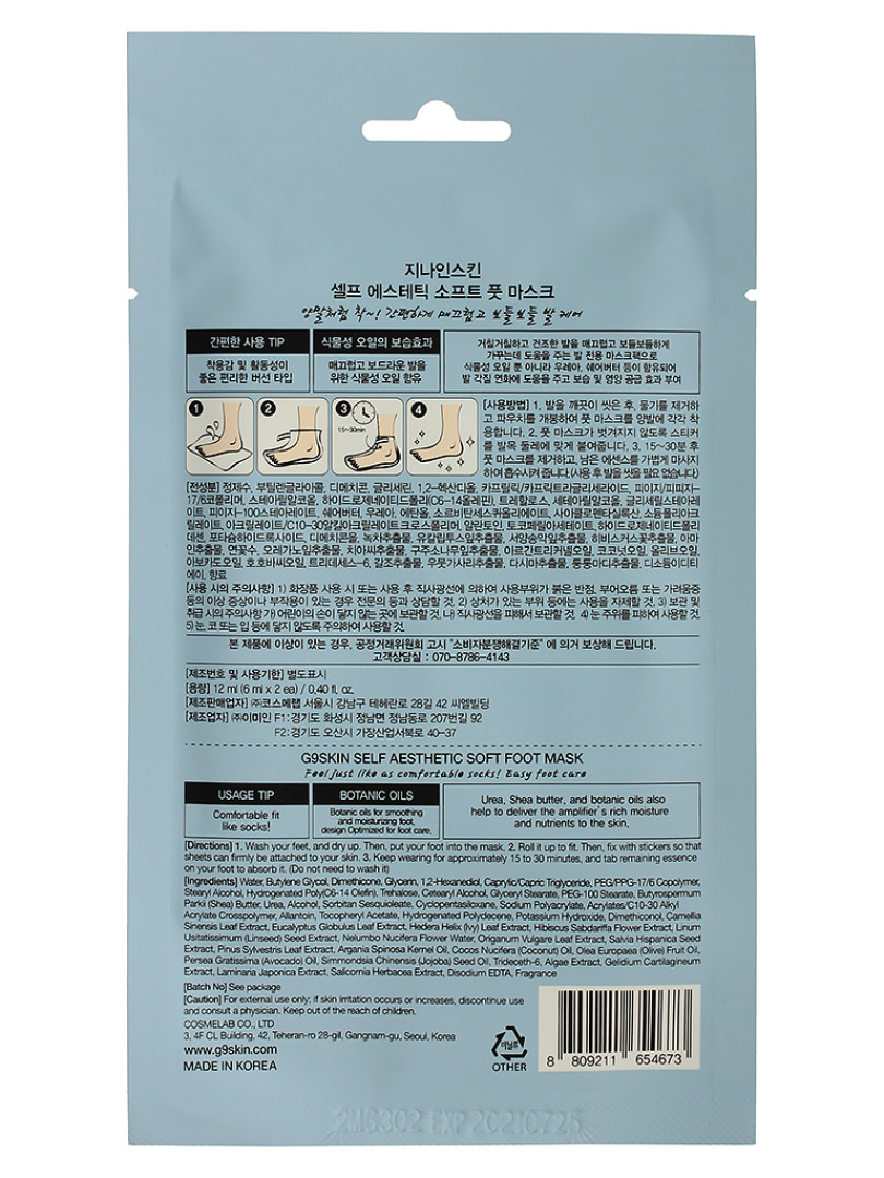 G9 Self Aesthetic Маска-носочки для ног G9 Self Aesthetic Soft Foot Mask 12мл