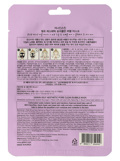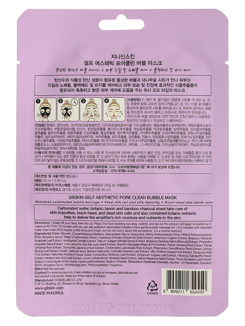 G9 Self Aesthetic Маска тканевая G9skin Self Aesthetic Pore clean Bubble mask 23мл