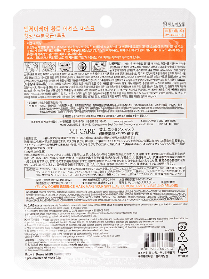 МЖ Essence Маска тканевая для лица Охра Yellow Ocher Essence Mask 23гр