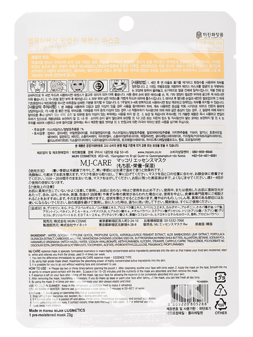 Изготовитель: MIJIN COSMETICS, Республика Корея, 53-45, 1 Gongdan-ro 6-gil, Gumi-si Gyeongsangbuk-do. Эффективно очищает и выравнивает кожу лица, делая ее бархатистой и нежной, интенсивно питает ее натуральными компонентами, увлажняет, оказывает регенерирующее действие. Нормализует обменные процессы в тканях кожи, насыщает натуральными витаминами и микроэлементами. Полезные вещества маски проникают в глубокие слои эпидермиса и оказывают видимое регенерирующее действие. Способ применения: Поместите маску на очищеное лицо обеспечив хороший контакт с кожей лица по всей площади нанесения. Снимите через 20 минут. Оставшуюся на лице эссенцию аккуратно разгладьте пальцами по косметическим линиям для лучшего впитывания в кожу. Объем:23гр