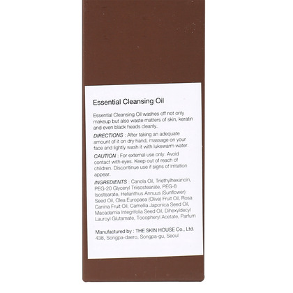 СКХ OIL Масло гидрофильное для лица очищающее THE SKIN HOUSE ESSENTIAL CLEANSING OIL