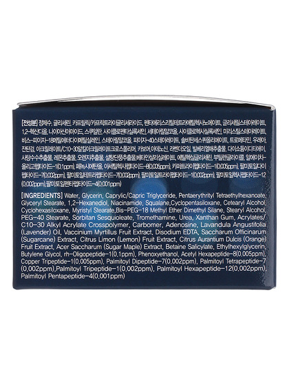 Water, Glycerin, Caprylic/Capric Triglyceride, Pentaerythrityl Tetraethylhexanoate, Glyceryl Stearate, 1,2-Hexanediol, Niacinamide, Squalane, Cyclopentasiloxane, Cetearyl Alcohol, Cyclohexasiloxane, Myristyl Stearate, Bis-PEG-18 Methyl Ether Dimethyl Silane, Stearyl Alcohol, PEG-40 Stearate, Sorbitan Sesquioleate, Tromethamine, Urea, Xanthan Gum, Acrylates/C10-30 Alkyl Acrylate Crosspolymer, Carbomer, Adenosine, Lavandula Angustifolia (Lavender) Oil, Vaccinium Myrtillus Fruit Extract, Disodium EDTA, Saccharum Officinarum (Sugarcane) Extract, Citrus Limon (Lemon) Fruit Extract, Citrus Aurantium Dulcis (Orange) Fruit Extract, Acer Saccharum (Sugar Maple) Extract, Betaine Salicylate, Ethylhexylglycerin, Butylene Glycol, rh-Oligopeptide-1 (0.1 ppm), Phenoxyethanol, Acetyl Hexapeptide-8 (0.005ppm), Copper Tripeptide-I (0.005ppm), Palmitoyl Dipeptide-7 (0.002ppm), Palmitoyl Tetrapeptide-7 (0.002ppm), Palmitoyl Tripeptide-I (0.002ppm), Palmitoyl Hexapeptide-12 (0.002ppm), Palmitoyl Pentapeptide-4 (0.001 ppm).
