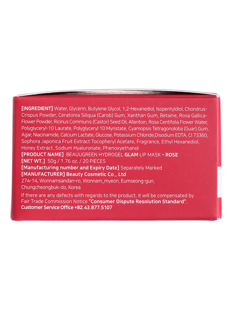 БГР Маски-патчи для губ BeauuGreen Hydrogel Glam Lip Mask - Rose 20pairs