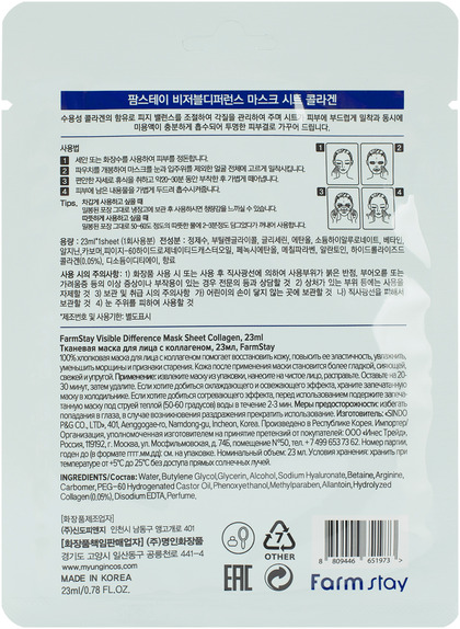 ФМС VD Маска для лица тканевая с коллагеном FarmStay Visible Difference Mask Sheet Collagen 23мл