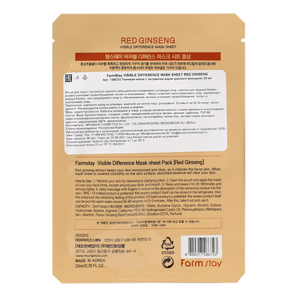 ФМС VD Маска тканевая FarmStay VISIBLE DIFFERENCE MASK SHEET RED GINSENG