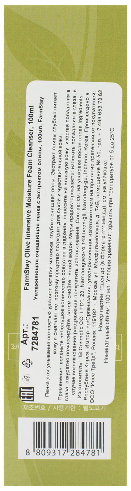 ФМС Foam Пенка для умывания с оливой Farmstay OLIVE INTENSIVE MOISTURE FOAM CLEANSER