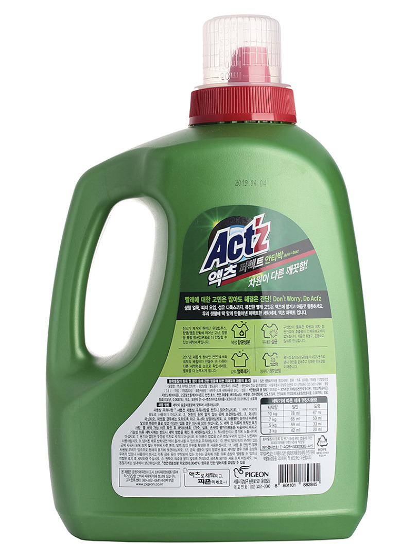 Изготовитель: PIGEON CORPORATION, КОРЕЯ, РЕСПУБЛИКА, 628-13, Yoksam-dong, Kangnam-ku, Seul, 135-080. Высококонцентрированный антибактериальный гель для стирки содержит комплекс антимикробных компонентов, превосходно очищает стойкие загрязнения, устраняет бактерии вызывающие неприятный запах, придает свежий аромат и смягчает ткань. Отличное противомикробное действие с помощью натуральных компонентов (семена софоры и гвоздика), а также удаление пылевых клещей. Комплексная очистка от жира, кожных выделений, волокон и пыли. Способ применения: Для машинной стирки на 3 кг белья — 20 мл, на 5 кг — 33 мл, на 7 кг — 50 мл. Меры предосторожности: соблюдать дозировку; не лить на ткань;