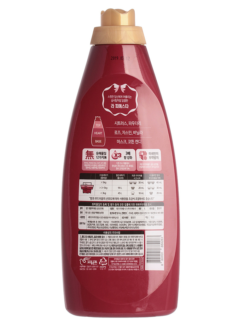 Изг-ль: PIGEON CORPORATION, КОРЕЯ, РЕСПУБЛИКА, 628-13, Yoksam-dong, Kangnam-ku, Seul, 135-080. Суперконцентрированный кондиционер (10 мл на стирку) предназначен для стирки одежды из хлопка, льна, шерсти, смешанных и синтетических тканей в машинах активаторного и барабанного типов. Кондиционер придает белью яркий парфюмированный аромат, смягчает, разглаживает складки, снимает статическое напряжение, облегчает процесс глаженья. Способ применения и дозировка: залить средство в лоток стиральной машины перед полосканием или добавить в конце полоскания при ручной стирке из расчета: на каждые 15 л воды 10 мл кондиционера.
