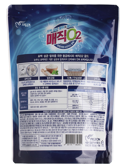 Изготовитель: PIGEON CORPORATION, КОРЕЯ, РЕСПУБЛИКА, 628-13, Yoksam-dong, Kangnam-ku, Seul, 135-080. Средство с мощной очищающей формулой на основе натуральных ферментов и с активным кислородом позволяет избавиться от кофейных и винных пятен, удаляет с вещей жировые пятна, соус, соки, газированные напитки. Также пятновыводитель помогает отстирать пятна от косметики, шариковых ручек, травы, ржавчину и кровь. Воротники и манжеты также будут радовать своей чистотой после использования пятновыводителя. Средство обладает отбеливающим эффектом, оказывает сильное дезинфицирующее действие. Способ применения: Добавить вместе со стиральным средством и стирать обычным способом.