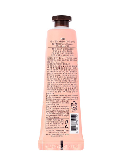Изготовитель: «THE SAEM INTERNATIONAL CO.LTD. », КОРЕЯ, РЕСПУБЛИКА, 10F, 35, Cheonggyecheon-ro, Jongno-gu, Seoul. Эссенция парфюмированная для рук. Быстро впитывается, покрывая кожу тончайшей вуалью, придает мягкость и гладкость коже рук, защищает от потери влаги, воздействия факторов внешней среды и агрессивных химических средств. Способ применения: нанесите крем на чистую кожу рук массирующими движениями.