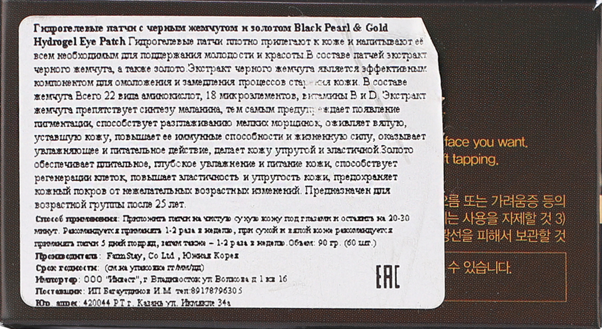 ФМС Patch Патчи гидрогелевые для области вокруг глаз FarmStay Black Pearl & Gold Hydrogel Eye Patch, 90g