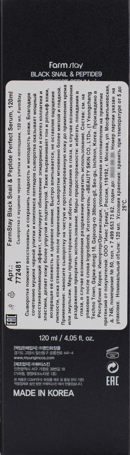 Изготовитель: MYUNGIN COSMETICS CO. LTD., 441-4, Gongneungcheon-ro, Ilsandong-gu, Goyang-si, Gyeonggi-do, РЕСП. КОРЕЯ. Сыворотка поможет восстановить и сохранить гладкость и молодость кожи. Благодаря сочетанию муцина черной улитки и комплекса пептидов сыворотка оказывает мощный восстанавливающий эффект, стимулирует обновление эпидермиса и синтез коллагена и эластина, делает кожу более упругой и подтянутой. Также выравнивает тон и рельеф кожи, возвращая ей свежесть и здоровое сияние. Быстро впитывается, не оставляя ощущения липкости, кожа становится после применения сыворотки мгновенно более мягкой и гладкой. Применение: наносите сыворотку на чистую и протонизированную кожу до применения крема или эмульсии.