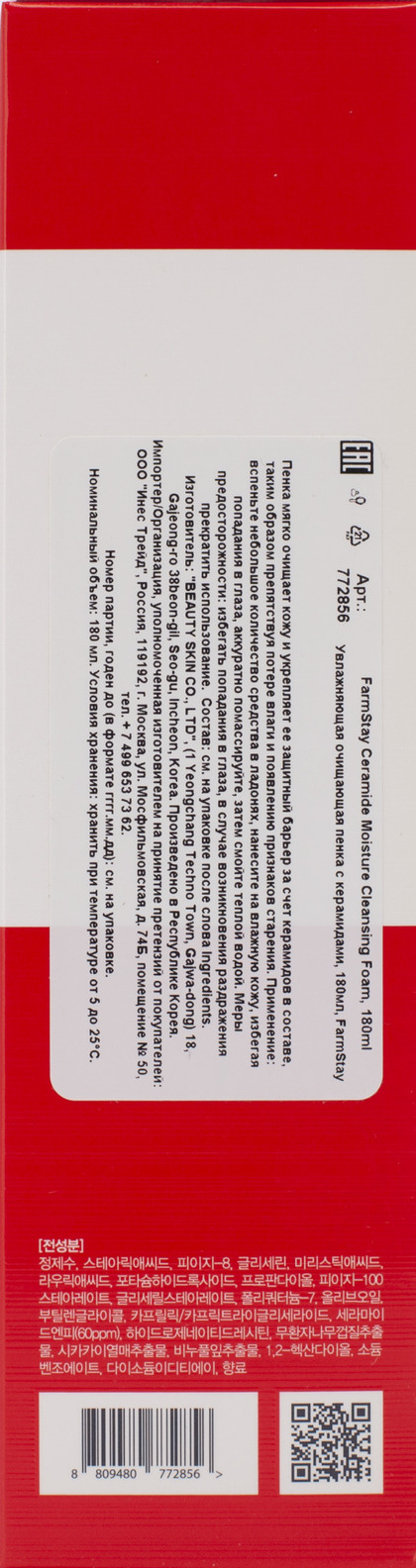 ФМС Ceramide Пенка увлажняющая очищающая с керамидами FarmStay Ceramide Moisture Cleansing Foam, 180ml