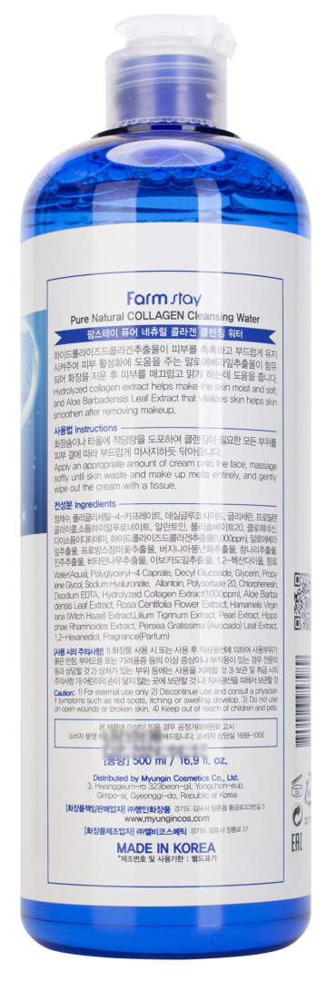 ФМС Collagen Вода очищающая FarmStay Pure Natural Collagen Cleansing Water, 500ml
