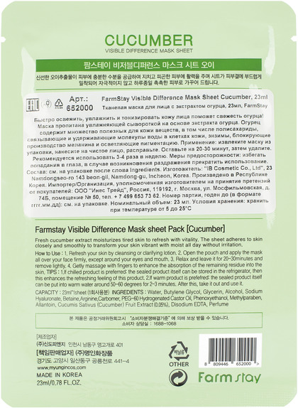 ФМС VD Маска тканевая FarmStay Visible Difference Mask Sheet Cucumber, 23ml