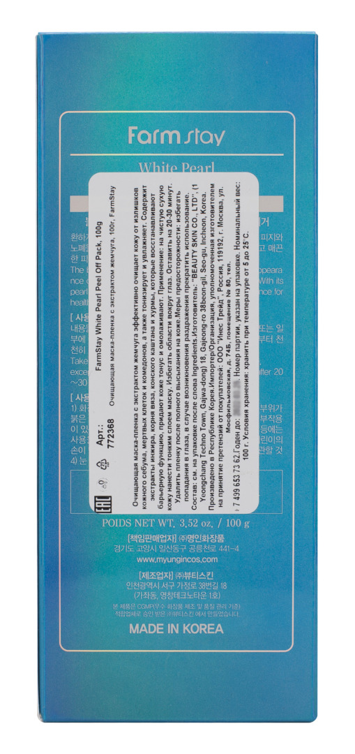 ФМС Peel-Off Маска-пленка с экстрактом жемчуга FarmStay White Pearl Peel Off Pack, 100g