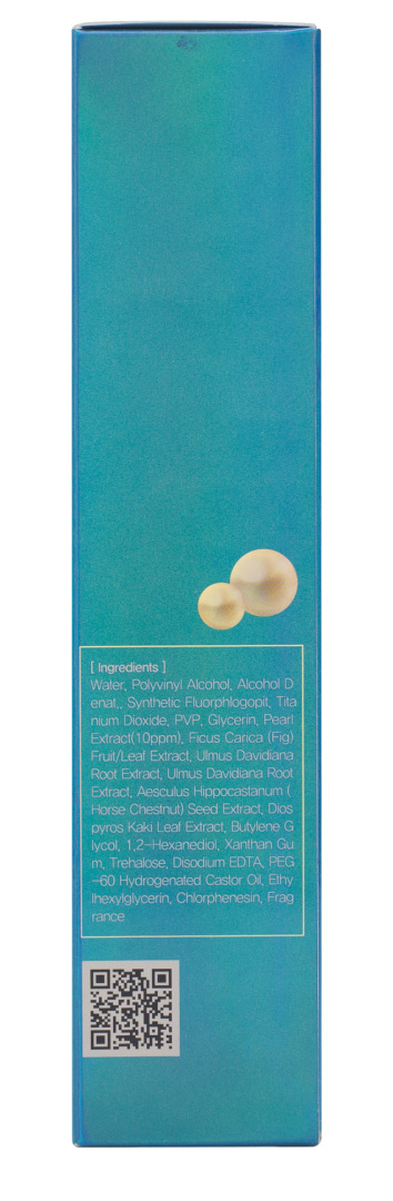 Water, Polyvinyl Alcohol, Alcohol Denat., Synthetic Fluorphlogopit, Titanium Dioxide, PVP, Glycerin, Pearl Extract, Ficus Carica (Fig) Fruit/Leaf Extract, Ulmus Davidiana Root Extract, Aesculus Hippocastanum (Horse Chestnut) Seed Extract, Diospyros Kaki Leaf Extract, Butylene Glycol, 1,2-Hexanediol, Xanthan Gum, Trehalose, Disodium EDTA, PEG-60 Hydrogenated Castor Oil, Ethylhexylglycerin, Chlorphenesin, Fragrance.
