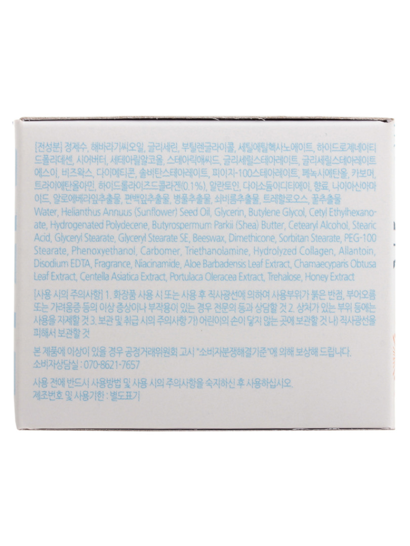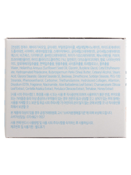 Water, Helianthus Annuus (Sunflower) Seed Oil, Glycerin, Butylene Glycol, Cetyl Ethylhexanoate , Hydrogenated Polydecene , Butyrospermum Parkii (Shea) Butter, Cetyl Alcohol, Stearic Acid, Glyceryl Stearate, Glyceryl Stearate SE, Beeswax , Dimethicone, Sorbitan Stearate, PEG-100 Stearate, Phenoxyethanol, Carbomer, Triethanolamine, Hydrolyzed Collagen, Allantoin, Disodium EDTA, Fragrance, Niacinamide, Aloe Barbadensis Leaf Extract, Chamaecyparis Obtusa Leaf Extract, Centella Asiatica Extract, Portulaca Oleracea Extract, Trehalose, Honey Extract, Blue 1