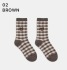 Ggrn B Type(w-l-321) Носки женские длинные, коричневые с принтом клетка/мишка, размер 35-39, B Type(w-l-321-02)adults