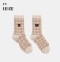 Ggrn B Type(w-l-321) Носки женские длинные, бежевые с принтом клетка/мишка, размер 35-39, B Type(w-l-321-01)adults
