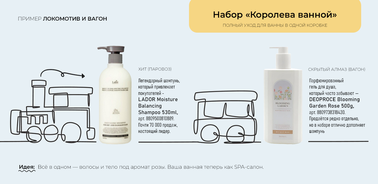 А вот подход, когда вы предлагаете не просто набор ради количества, а оформляете его как готовый ответ на конкретную задачу покупателя, работает куда сильнее. Такие комплекты можно подать по-разному: как «схему ухода», «готовое решение для…», «быстрый старт», «рутинный набор» — в любом формате, который сразу объясняет покупателю, какую именно задачу он решит.