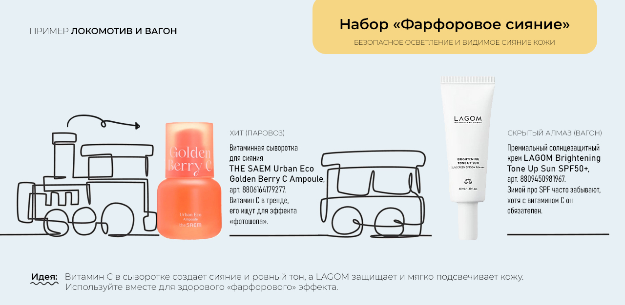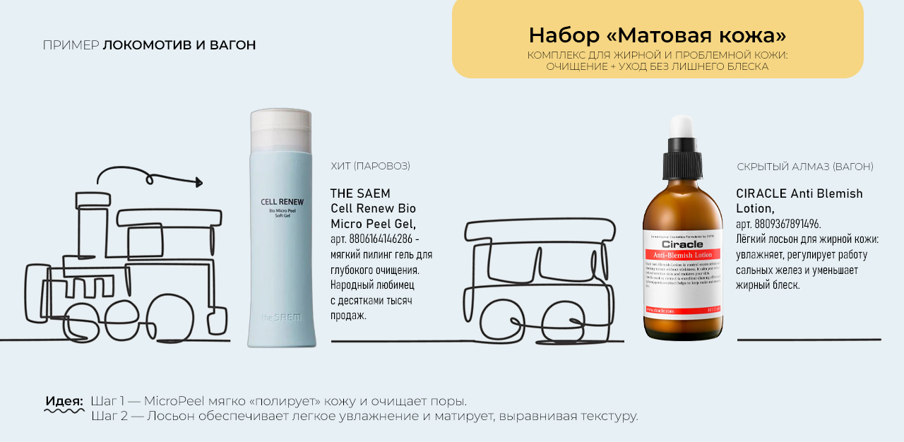 Человек приходит за известным товаром, но выбирает набор, потому что понимает: вместе эффект лучше и безопаснее.